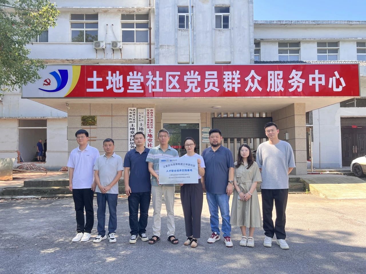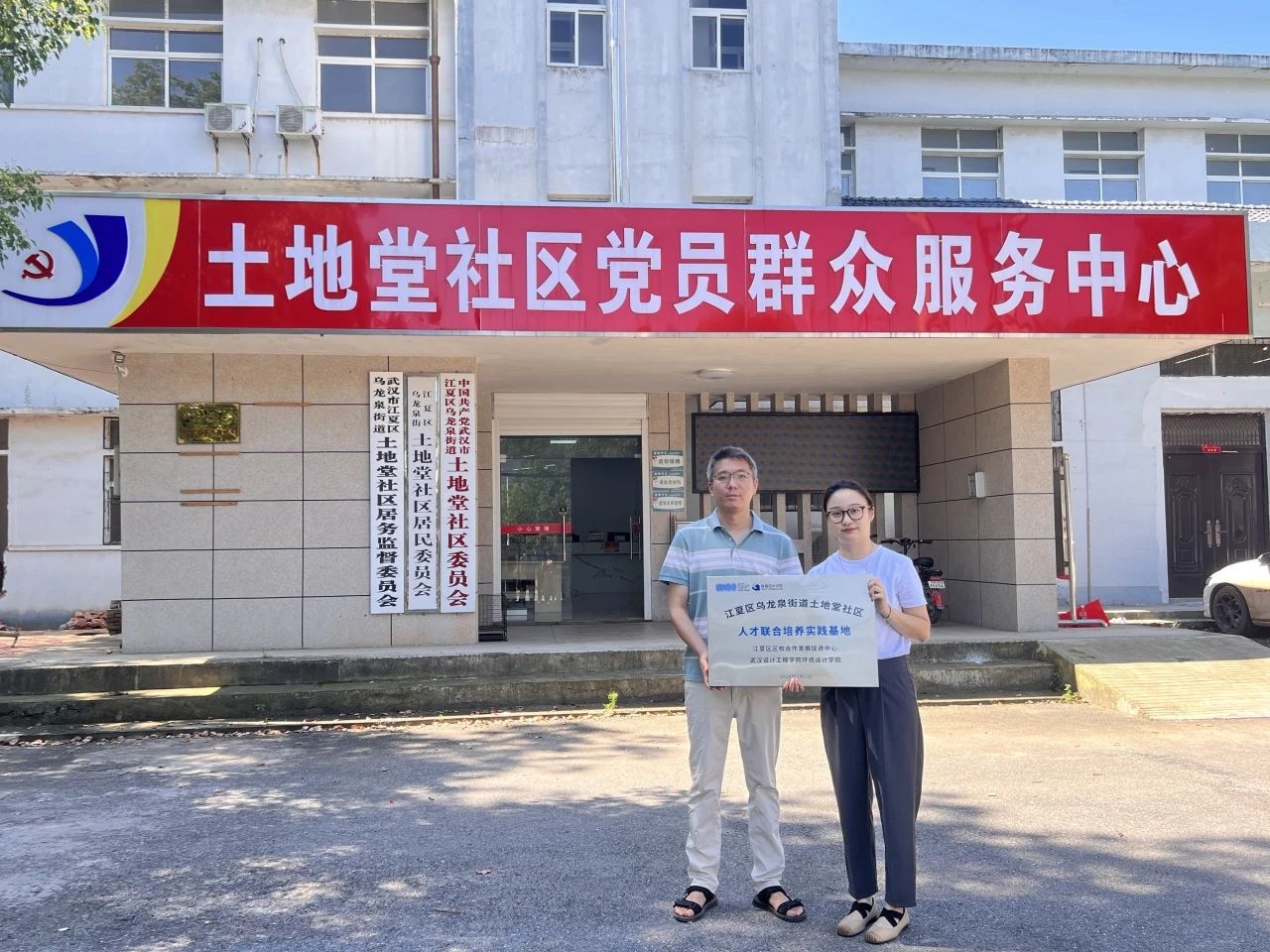 授牌仪式在土地堂社区党员群众服务中心举行,公司党总支书记谢曦临、学校产学研中心副主任王欣、学院分团委书记黄俊杰、江夏区乌龙泉街道土地堂社区党总支书记兼居委会主任董刚、乌龙泉街道党建办副主任顾环宇、江夏区区校合作发展促进中心科长何亮出席了本次活动。