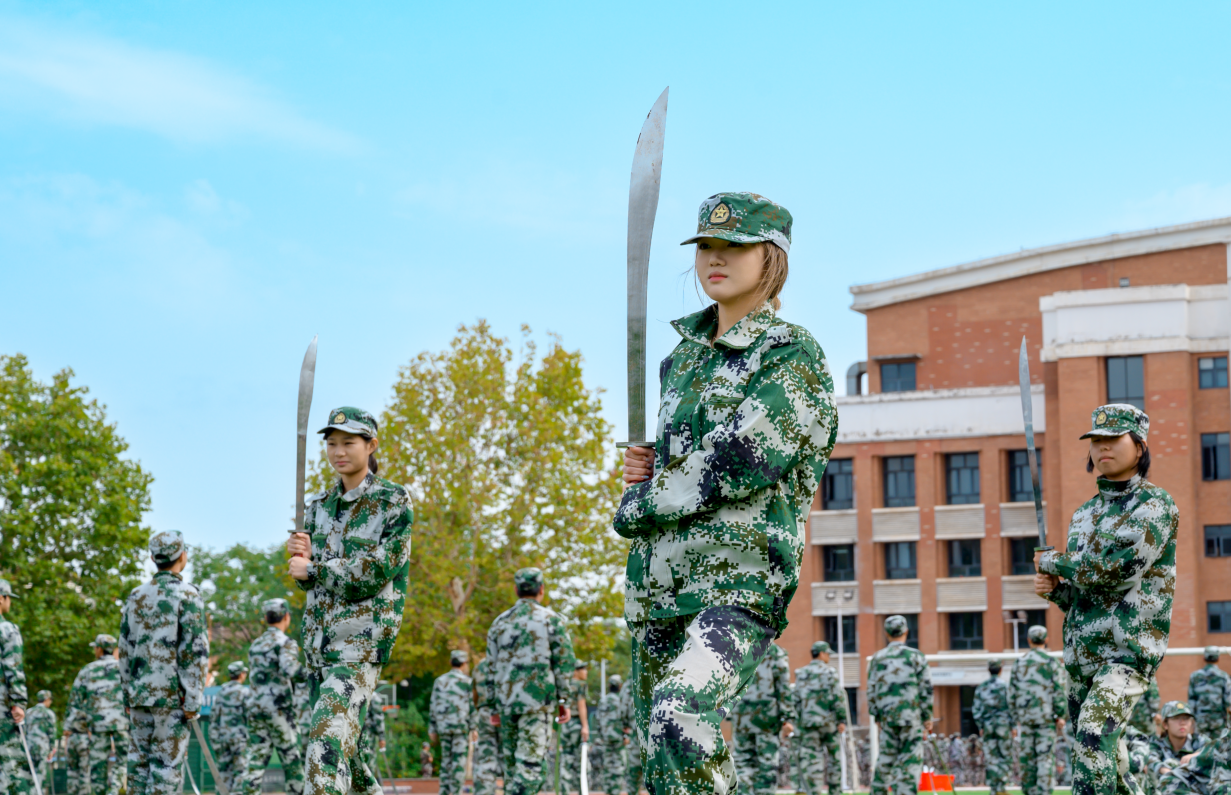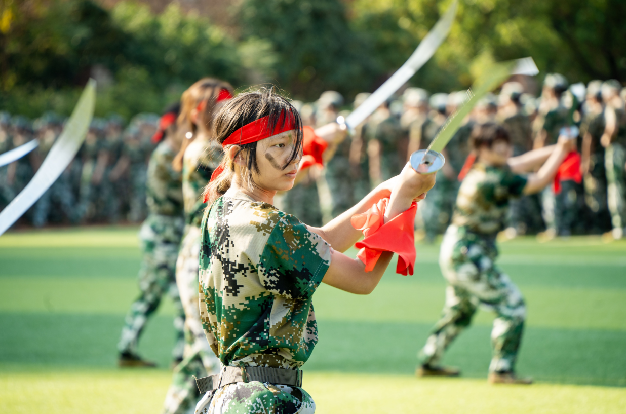 在匕首操、军体拳方阵,战鼓擂响,每一次呐喊都掷地有声,一拳一脚都虎虎生风,刚劲有力,凸显了同学们的铮铮铁骨和顽强意志,赢得了阵阵喝彩与掌声。
