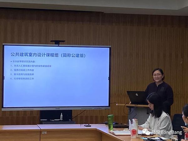第二议题,任璐老师针对新课题《公共建筑室内设计》课程结构建设内容进行分享。任老师针对实施计划与阶段性成果进行汇报,其中对其组员们完成的阶段性成果进行展示,条理清晰的对课程开展提出详实的实施计划。叶经理也对其工作进行肯定,并对系部老师都提出专业能力都需要更专更精的要求。