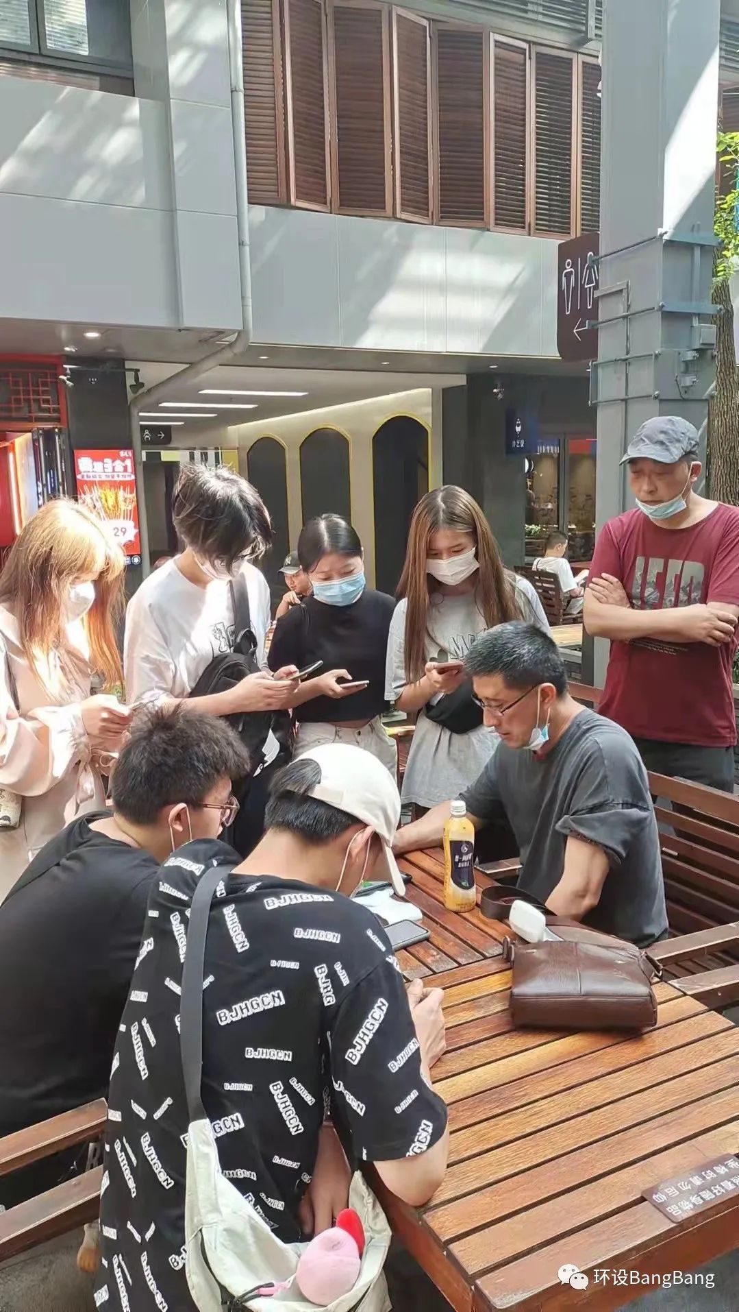 老师和同学们在武汉天地调研老建筑在现代商业