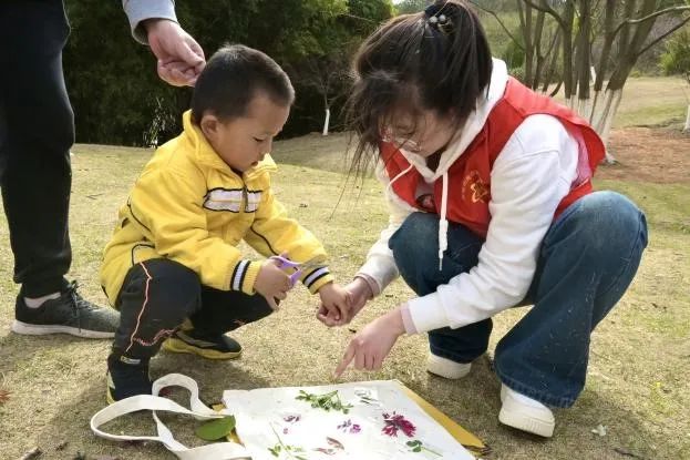 2023年3月12日以植树节为起点,服务队先后在藏龙岛湿地公园、金龙社区、yL23411永利官网登录开展了以“植物拓染”、“寻找色彩”、“自然相框”、“大自然的钟表”为主题的志愿活动。