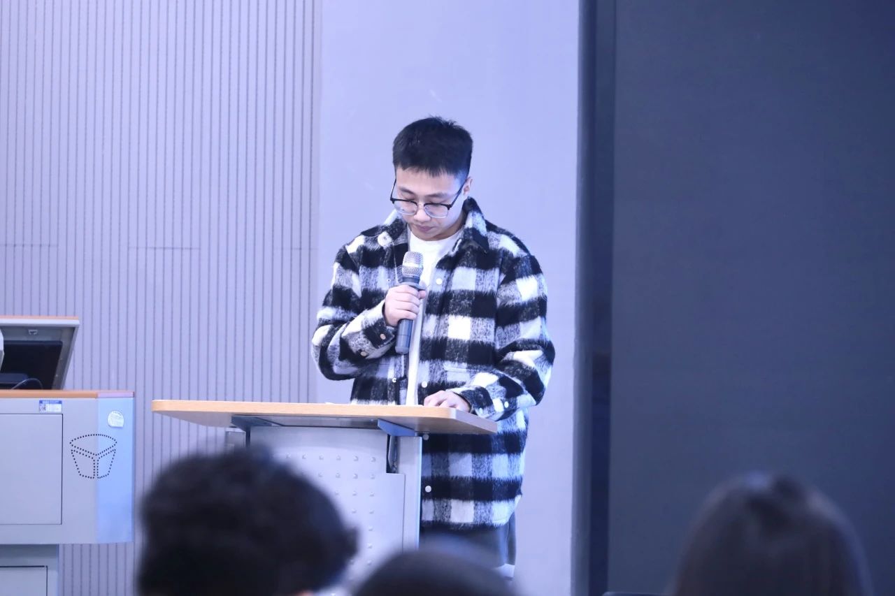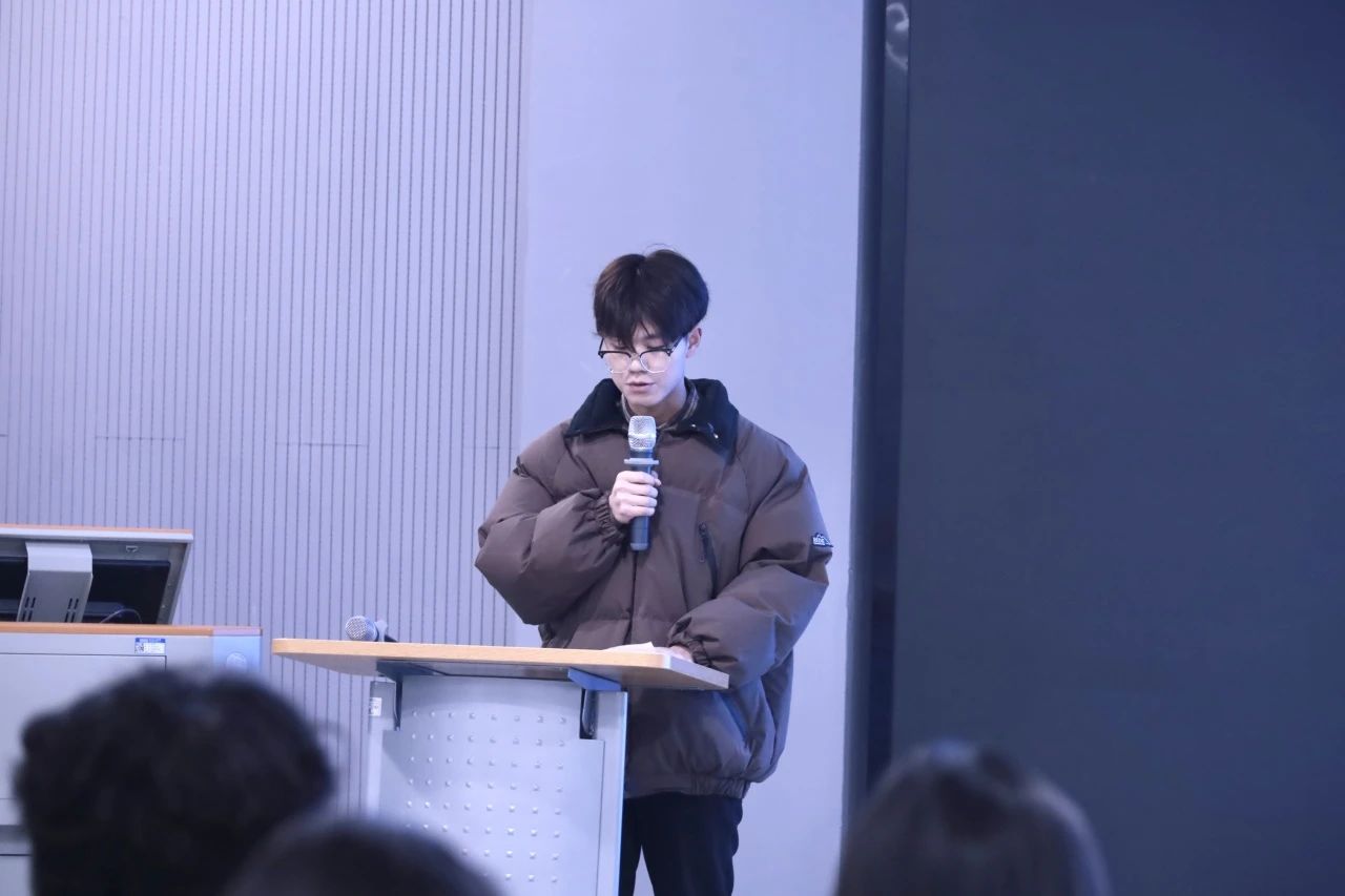 大会第三项,第一届分团委员工会员工代表赵治博同学发言,回顾了过去工作经历获得的成长与领悟同时欢迎新力量的加入。第二节届分团委的李梓萱、秦杰印同学作为员工会新生代表发言,表达了加入员工会组织甘于奉献的初心以及坚守为同学服务的决心。