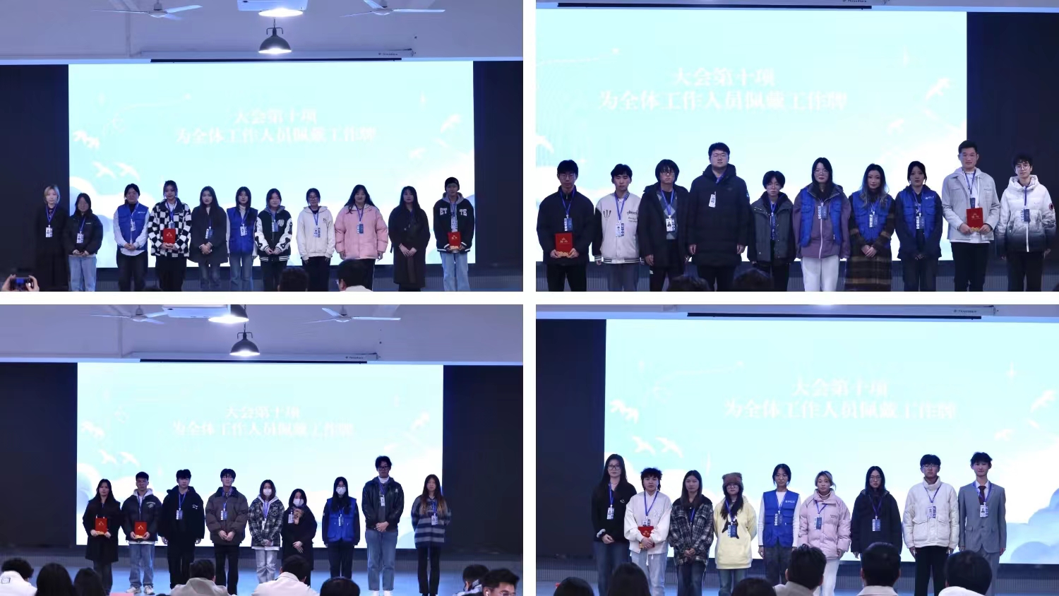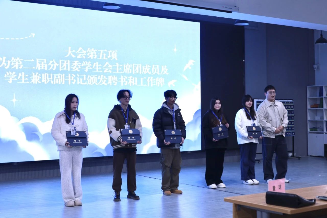 分团委员工会指导老师李闯老师为第二届分团委员工会主席团成员颁发聘书和工作牌。象征着荣誉的聘书是对他们工作的肯定及鼓励,为他们成长道路增砖添瓦。