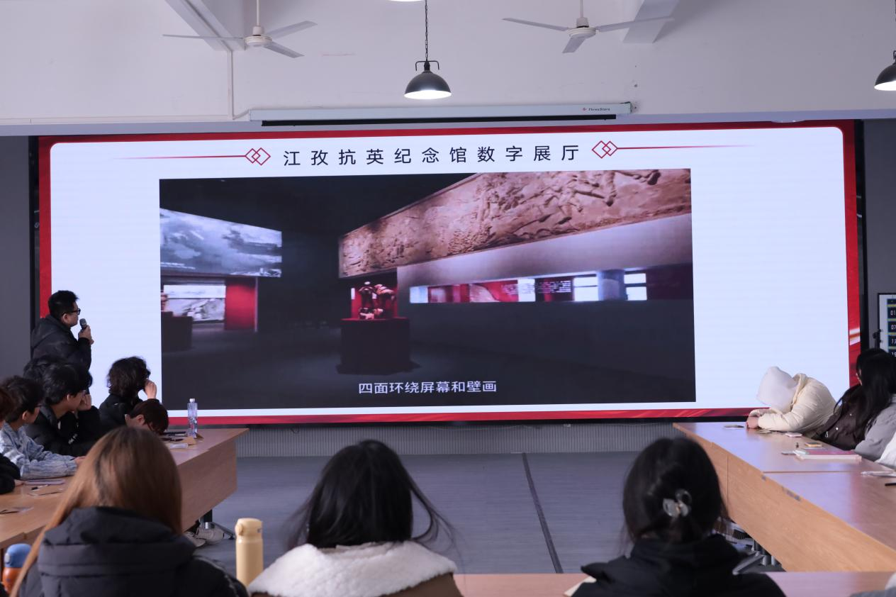 在“朋辈分享”环节,大四学长黄愿平和徐菘浩的分享给同学们带来了深刻的启示和宝贵的经验。黄愿平学长以《江孜抗英纪念馆数字展厅》项目制作过程为案例,详细讲解了环境设计专业与数字化技术的结合运用。他详细阐述了项目从设计到实施的全过程,包括数字化建模、场景渲染、交互设计等环节,让同学们对数字化环境设计的实际应用有了更直观的了解。