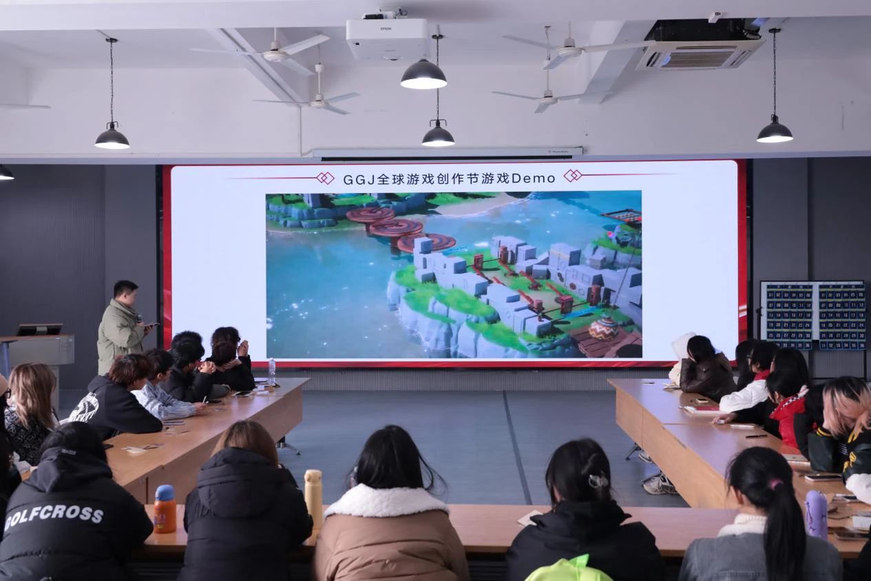 徐菘浩学长则分享了寒假期间参加“GGJ全球游戏创作节”的比赛经历。在比赛中,他尝试将环境设计的理念和方法融入到游戏创作中,通过精心设计游戏场景和角色,打造了一个富有创意和趣味性的游戏作品,以及如何通过团队合作克服困难、取得佳绩的过程,使同学们了解到数字化环境设计能融入更多专业方向的可行性。