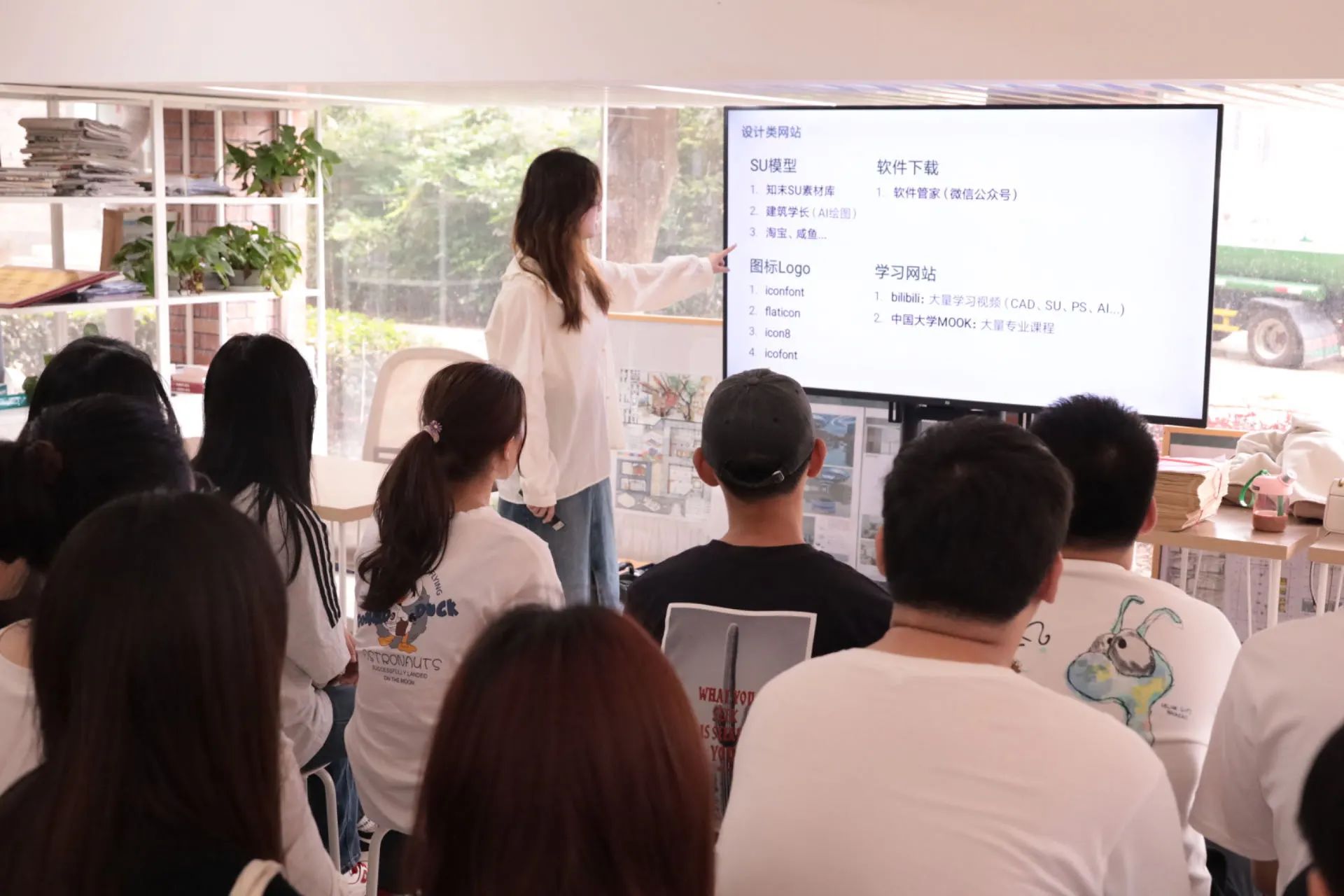 紧接着,张老师向同学们分享了与专业相关的设计软件和设计类网站,并鼓励大家积极利用线上学习资源,拓宽自己在设计和艺术领域以及专业技能的知识储备。张老师指出,线上学习资源呈现了前沿的设计趋势、创意作品,以及跨领域的设计解决方案,能够为同学们提供宝贵的灵感来源,有助于激发大家的创造力和想象力。此外,这类网站还是获取行业动态、为将来的职业规划奠定基础的优质平台。最后,张老师向同学们提出了制定每学期学习目标的建议,制定学习目标能够帮助同学们明确学习重点、激发学习动力,从而更好地推动实现个人的人生目标。