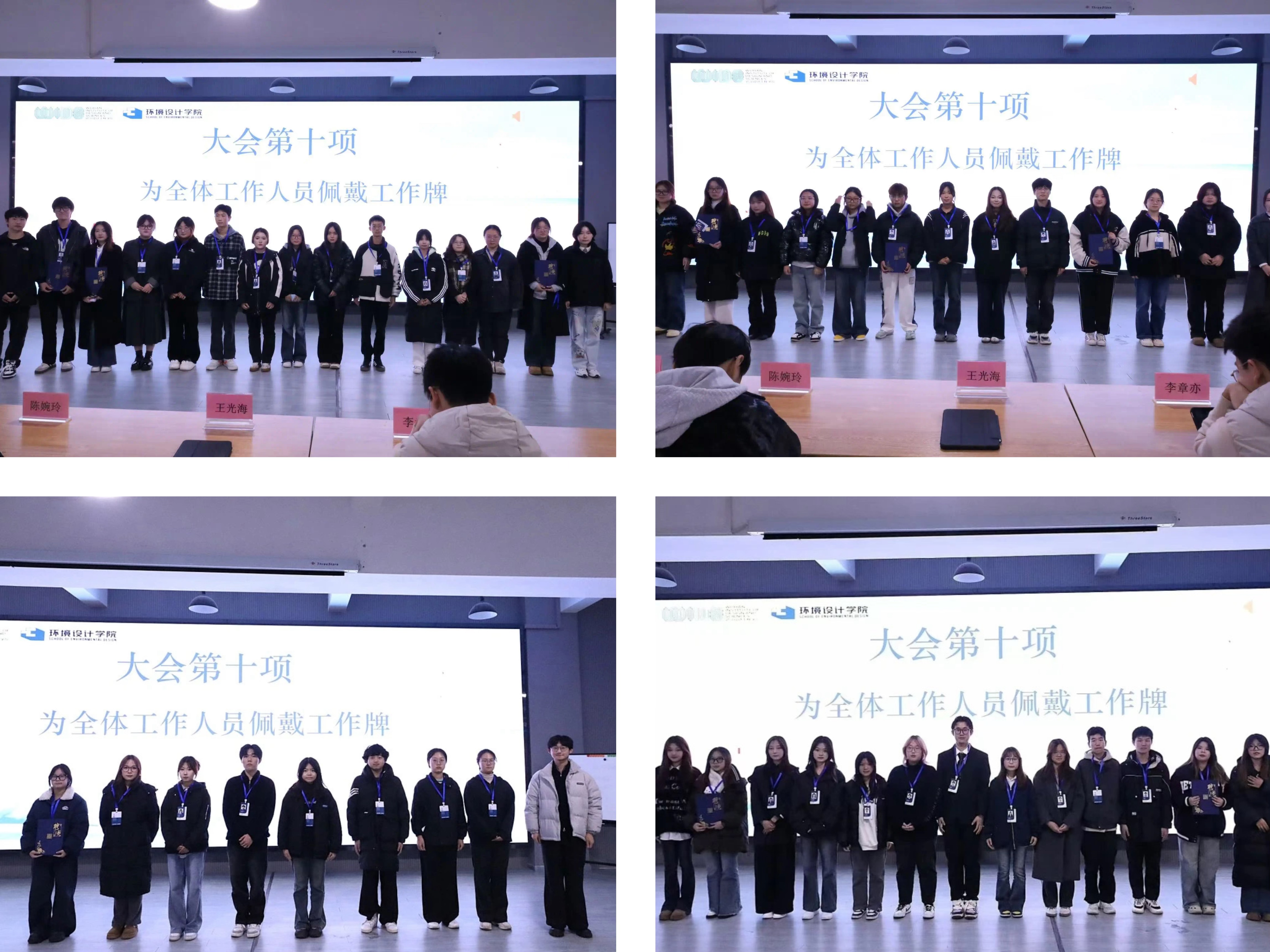 大会的重要环节中,黄俊杰老师为新一届主席团成员颁发聘书和工作牌,这不仅是对他们能力与努力的认可,更是一份沉甸甸的责任与期许,激励着他们在未来的工作中积极作为,全心全意为同学们谋福祉。分团委员工兼职副书记胡鑫、员工会执行主席涂晶英也分别分享了过去的工作经验与深刻感悟,以亲身经历鼓励新一届成员传承优良传统,在分团委员工会的广阔舞台上绽放光芒,践行服务同学的宗旨。