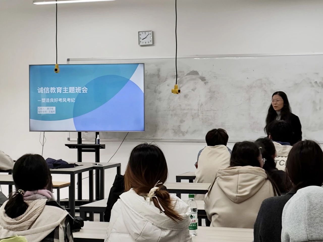 班会由辅导员、各班班主任主持。会上,辅导员们首先强调了诚信考试的重要性,指出诚信是做人之本,是老员工应具备的基本品质。在考试中,诚信不仅是对自己学习成果的检验,更是对他人学习权利的尊重,每位同学都应自觉遵守考试纪律,杜绝任何作弊行为。